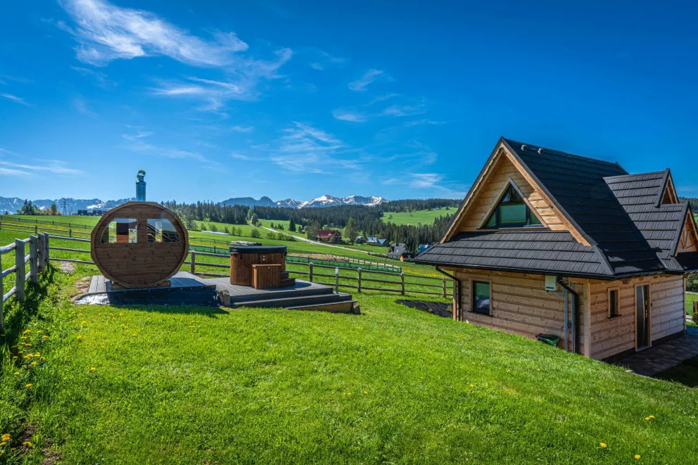 Na piętrze znajduje się część sypialna (1 łóżko podwójne i 2 łóżka pojedyncze). Do Państwa dyspozycji jest ogród z miejscem do grillowania. Bezpłatne WiFi. Przed każdym domkiem znajduje się taras. Z domków roztacza się piękny widok na Tatry oraz pobliskie łąki i lasy. W niewielkiej odległości znajduje się ścieżka rowerowa, idealna do uprawiania pieszych oraz rowerowych wędrówek. Domki usytuowane są w bardzo dobrej lokalizacji.